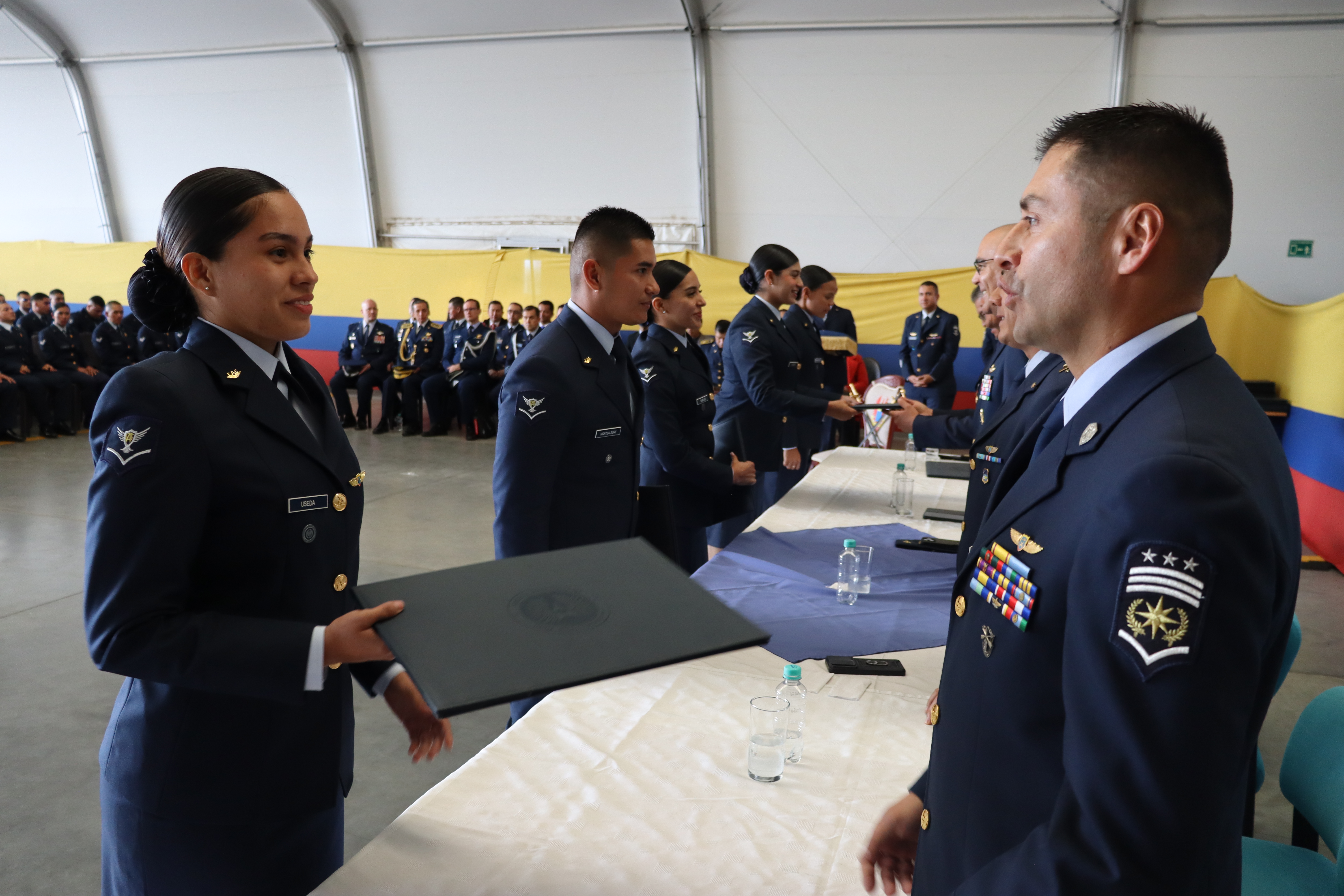 La Escuela de Suboficiales “CT. Andrés M. Díaz” felicitó a los nuevos Tecnólogos y a los Alumnos destacados, invitándolos a continuar demostrando profesionalismo, integridad y vocación de servicio. Asimismo, los animó a aplicar con excelencia los conocimientos adquiridos, contribuyendo de manera decisiva al cumplimiento de la misión de la Fuerza Aeroespacial Colombiana.